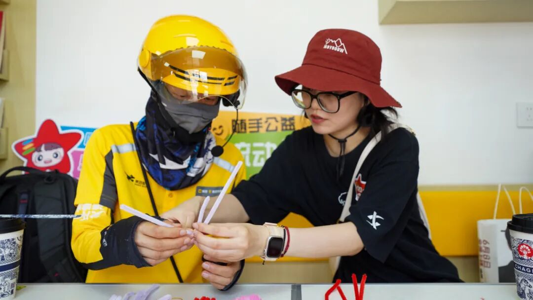 与此同时,特别为女骑手们准备的扭扭棒手工制作体验也吸引了不少参与者,她们充分展现自己的心灵手巧,制作出精美手工艺品。工作人员现场帮助女骑手们建立微信交流群,为后续进一步提供精准贴心的服务奠定良好基础。