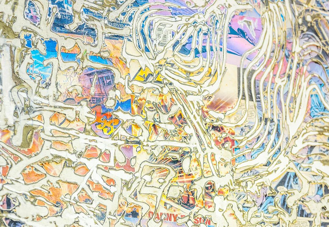 《社会抽象系列》是布拉德福德的代表作之一。画布上,他巧妙地利用了回收的纸张、广告海报和地图等材料,通过层层叠加、刮擦和撕裂的技法,在视觉上创造了强烈的冲击力,构建出丰富的层次和深度。这些日常物品在他的手中被赋予了新的生命,仿佛是洛杉矶这座城市肌理的缩影。从繁华的市中心到被边缘化的社区,每一层都承载着一个独特的城市故事。