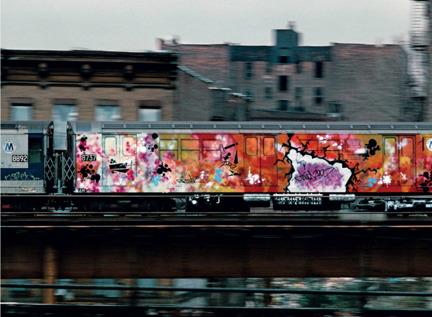 他的经历和一般涂鸦者一样,都是从墙上、地面上甚至地铁上开始了自己的涂鸦之路,从纽约地铁车厢的墙壁开始,那时候的他才 15 岁,即使被警察驱赶,也从来不会停下创作的脚步,放下他的喷漆和马克笔。
