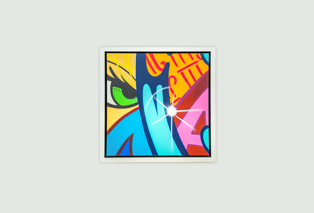 这件名为“无题”作品,就是对上世纪 80 年代纽约街头艺术气质的集中展现。CRASH 大胆运用高饱和度色彩,以流畅的线条将画面分割成五个区域,主色调黄、蓝、红构成了一幅活力四射的视觉宇宙。画面中的星芒,仅用几个笔触便产生了奇幻的立体效果,引领观者的目光深入其中。