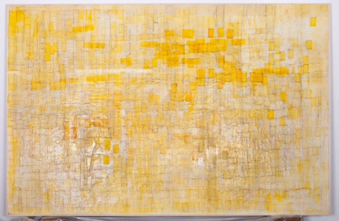 布拉德福德的早期作品《43G Spring Honey》,他使用了烫发过程中用来保护头发免于过热的烫发纸,这些薄且半透明的纸张,在画面上营造出柔和而精致的笔触效果,这是无名的小纸片第一次进入了艺术画布。