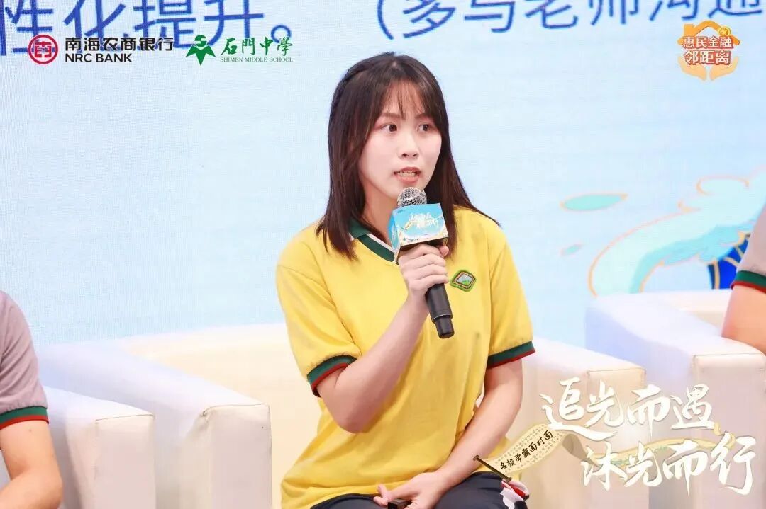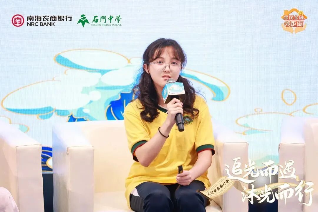 石门中学胡庆生副校长表示,中国启蒙思想家魏源有云“受光于庭户见一堂,受光于天下照四方”,石门中学一直用开放的视野去望向远方,也希望可以向更远的地方、更多的人们辐射教育智慧。“名校学霸面对面”交流分享会,是南海农商银行与石门中学联合创办的独家品牌项目,旨在进一步创新教育公益服务,为广大学子提供一个学习交流的平台,从而激发起更多学子的奋斗精神和求知欲望,共同营造积极进取、和谐友爱的校园学习氛围。