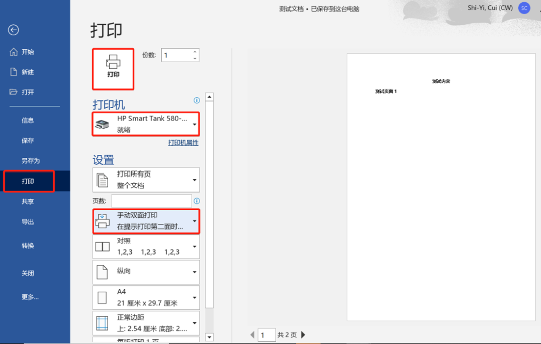 注意:部分打印机支持自动双面打印,本文机型不支持自动双面打印,示例方法为手动双面打印