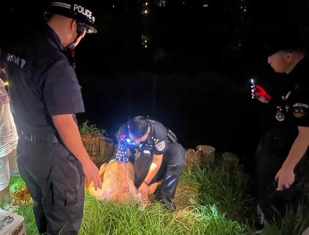 为落水男子进行心肺复苏急救