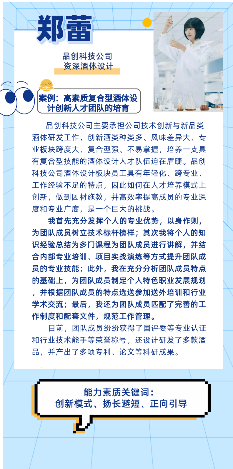 ●在系统、深度总结自身专业积累的基础上,能够实现认知、方法论等层面的提炼与沉淀,在公司范围内得到有效推广