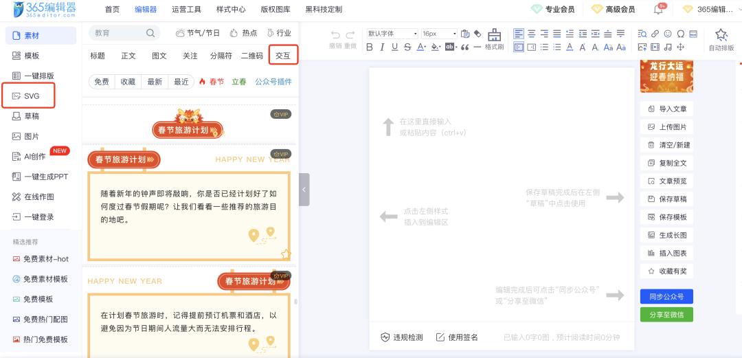 如果你想制作svg交互图文,打开365编辑器就够了!