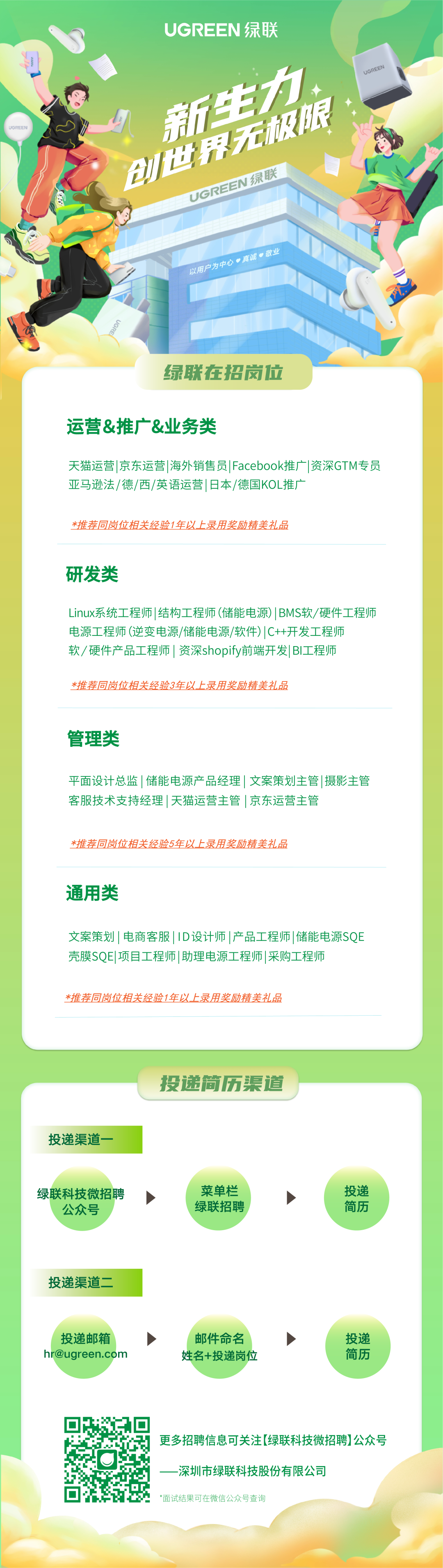 欢迎大家投递简历到绿联!