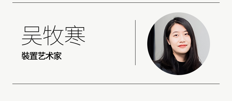 吴牧寒:我小时候一直在学画画,到了某个阶段发现自己其实对色彩的感觉并不敏锐。我尝试过许多创作方式,最终确定了自己喜欢做装置作品。大多数人都希望把自己喜欢的事情变成未来的职业,我也不例外。我平时很喜欢思考,也喜欢自省。从事艺术创作,是我对理想生活状态的一种回应。
