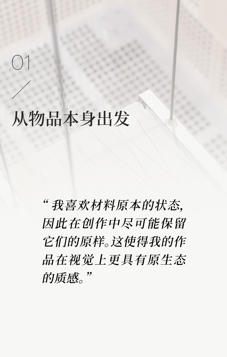 “做装置有一种在生活中的感觉,”她始终认为,物体是个体与世界、外物、自我意识发生关联的媒介,并对物体如何影响人、引起互动反应充满了好奇和求知欲。