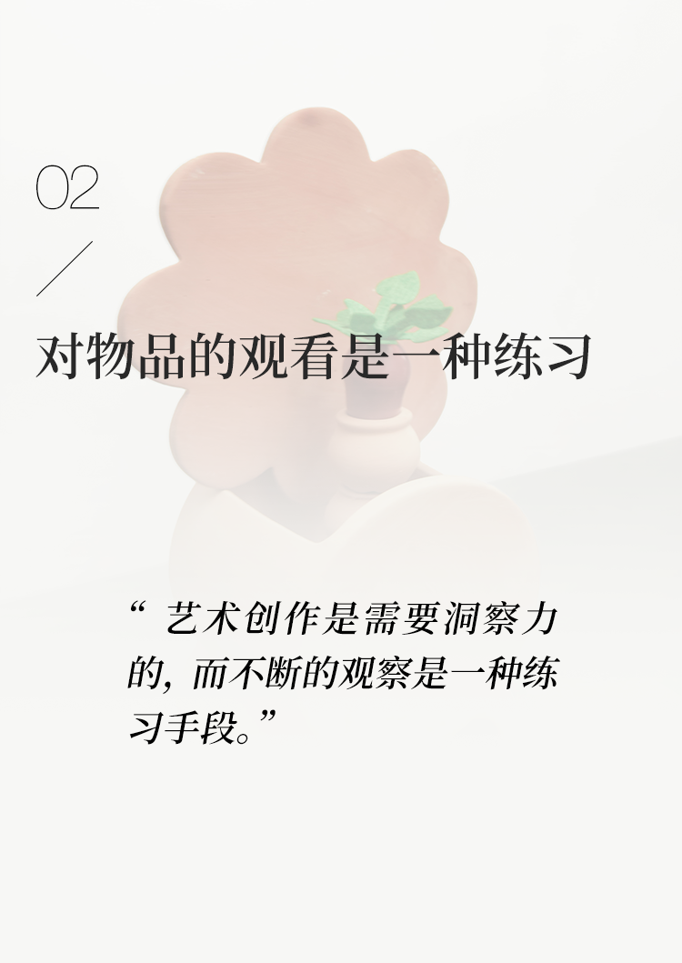 吴牧寒:艺术创作是需要洞察力的,而不断的观察是一种练习手段。福柯曾说,观看是一种权力。我们可以利用这种权力获取参与到物件中的经验。观看,是一种参与和介入的手段,它可以让我们跟物件建立亲密的关系。通过观察它的细节及其与其它物件的关联性,我们可以产生新的联想。我在日常生活中也会实践这种练习。
