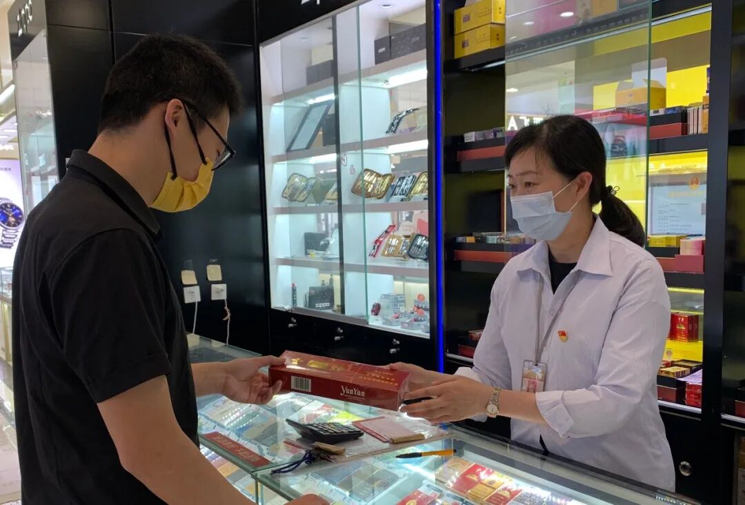 一枚枚党徽在柜台闪光