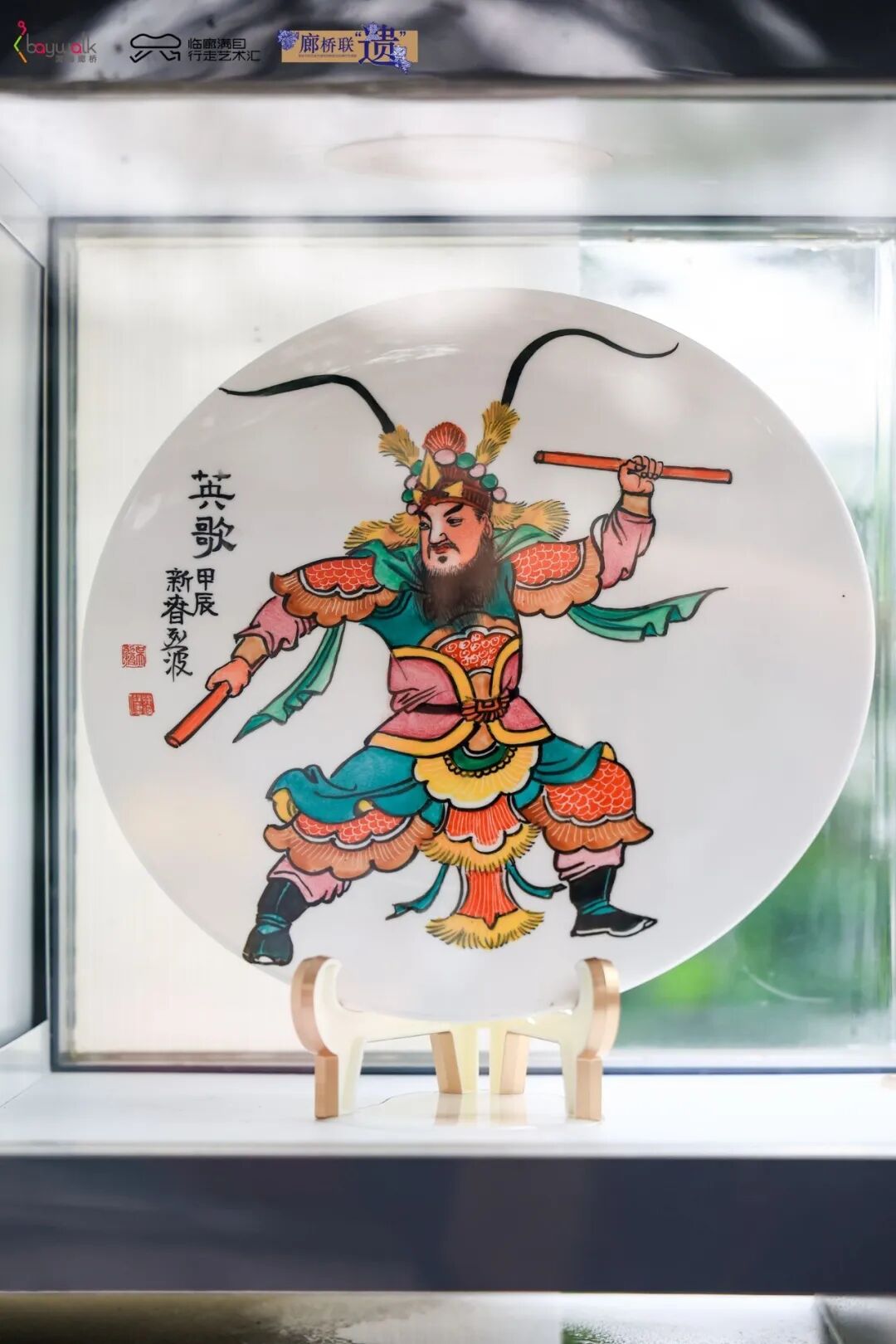 嵌瓷作为潮汕独有的建筑装饰艺术之一,是国家级传统民间技艺。由于汕头地区多风雨,传统彩绘易褪色,而嵌瓷因其耐久性而被誉为“永远亮丽的艺术”。多见于庙宇、祠堂、屋脊等等,是用大小不一、颜色各异的瓷片镶嵌而成。潮汕有句俗语:“厝角头有戏出”便是说它。嵌瓷多以双龙戏珠、双凤朝牡丹等为题材,装饰在脊头、厝角头上,活灵活现,屋脊生花。「 胪溪壁画:省级非物质文化遗产 」