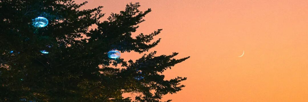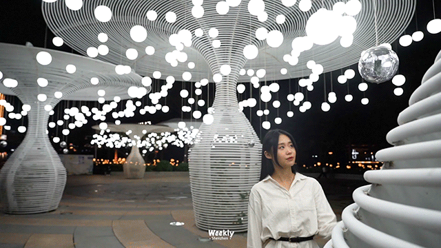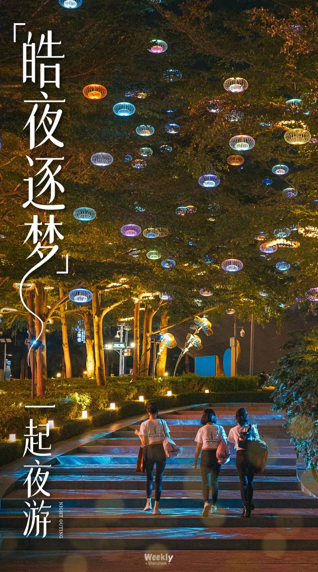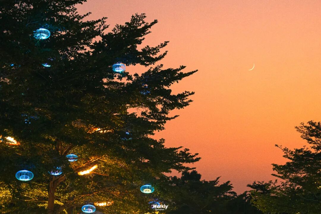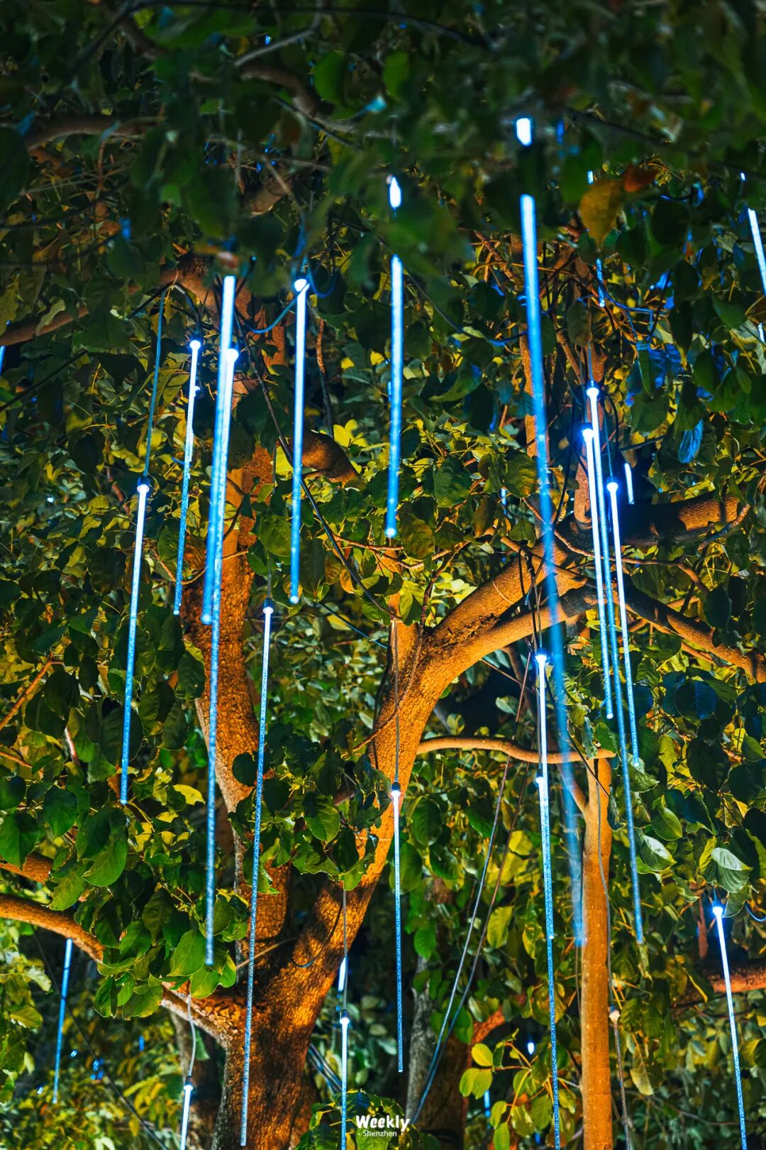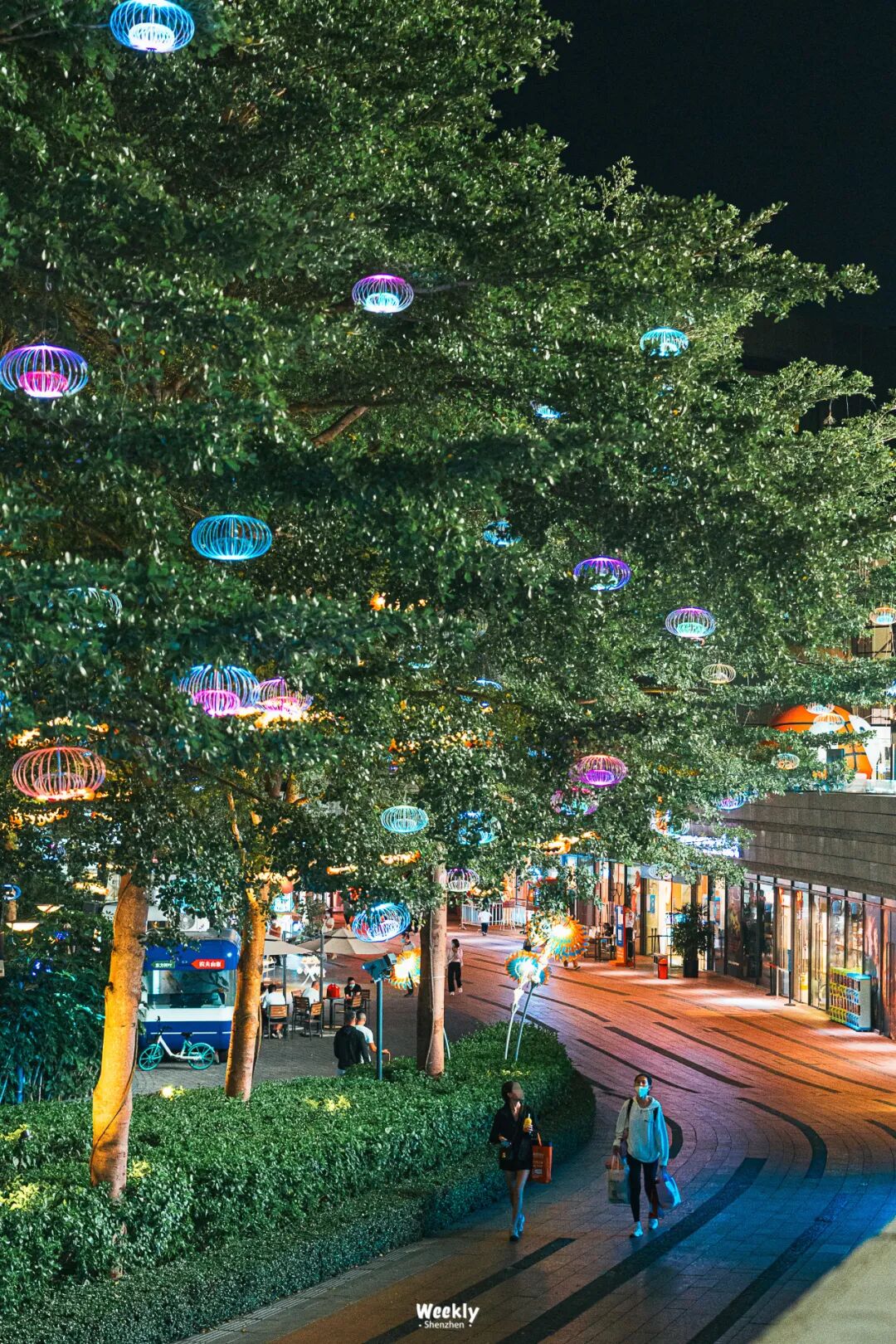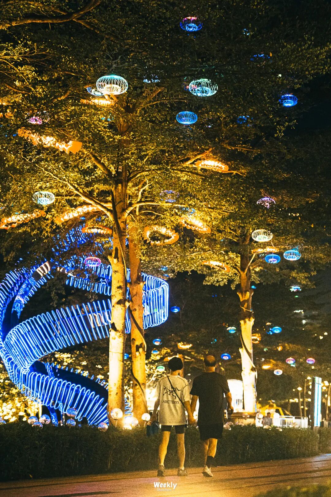 这里的光是特别的,有的是树上的水母,有的是河边的星光,五光十色的灯抹平了我对黑夜的恐惧,躁动的心再也按捺不住,留影、闲逛,恨不得在这里嗨到天亮。