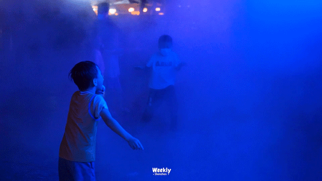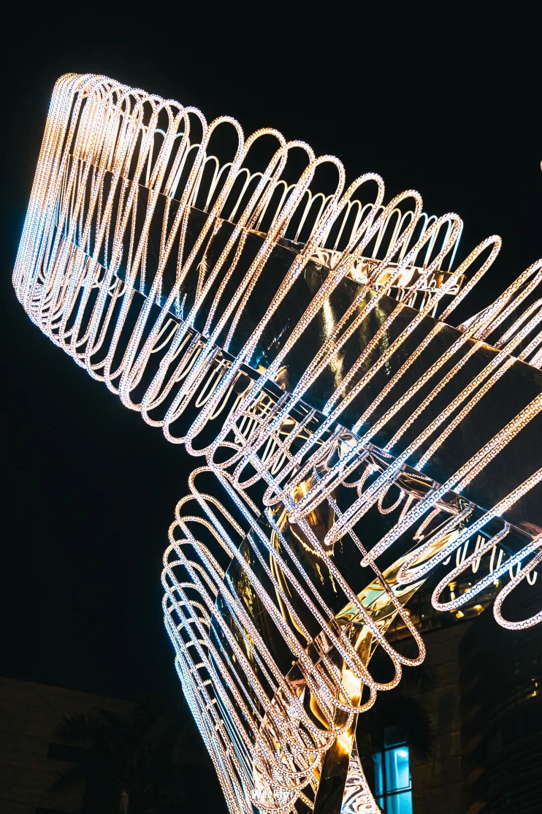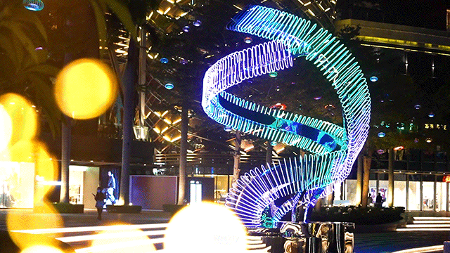46米长的灯光瀑布倾泻而下,内置红外线动态捕捉装置,为每一个路过的人跃起。