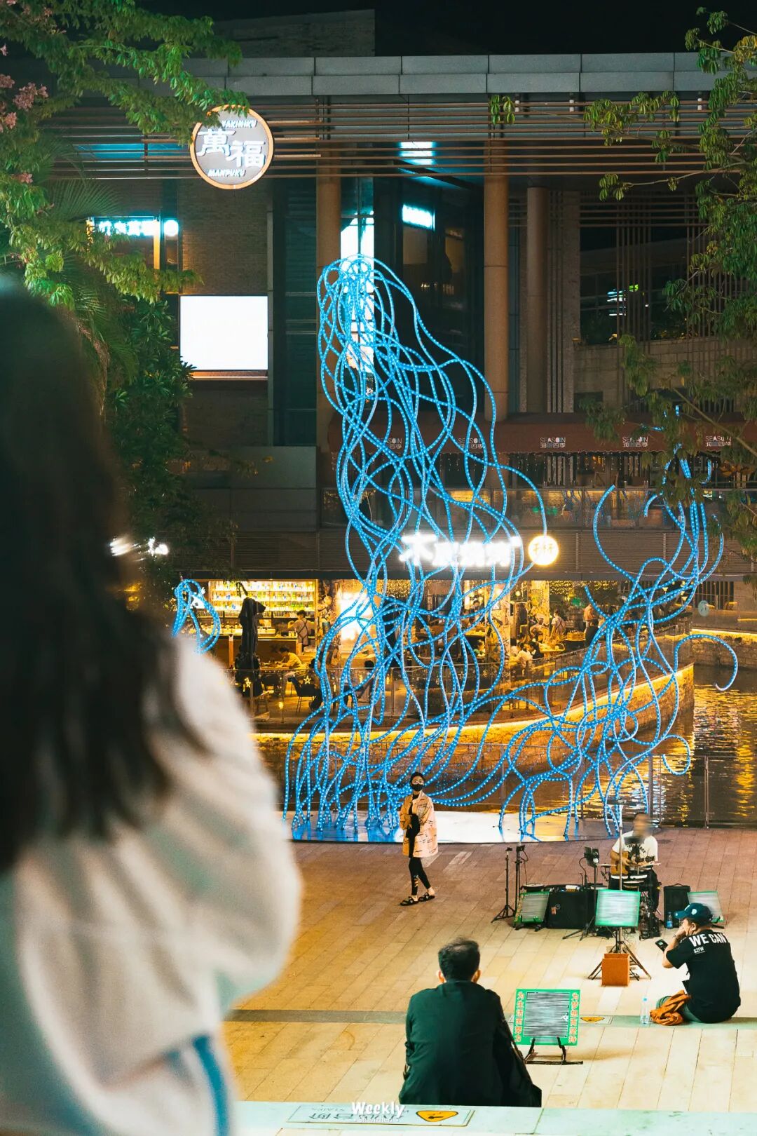 晚上下班其实不一定要窝在家里,欢乐海岸的夜晚,可以看灯赏湖,与光共舞也很惬意。