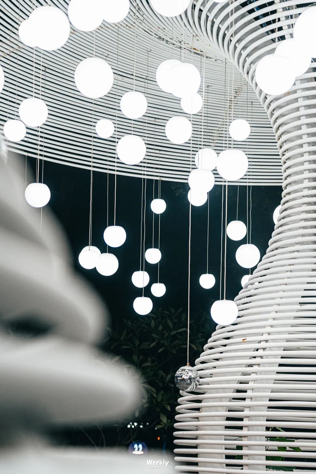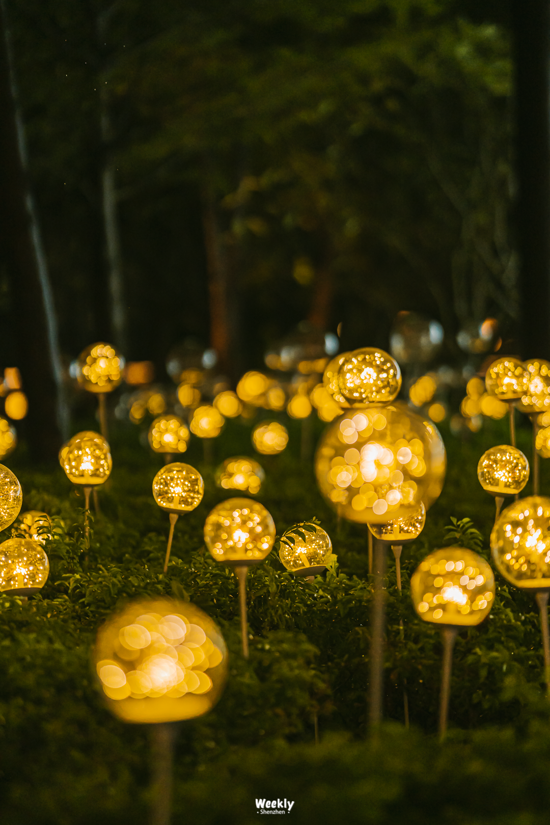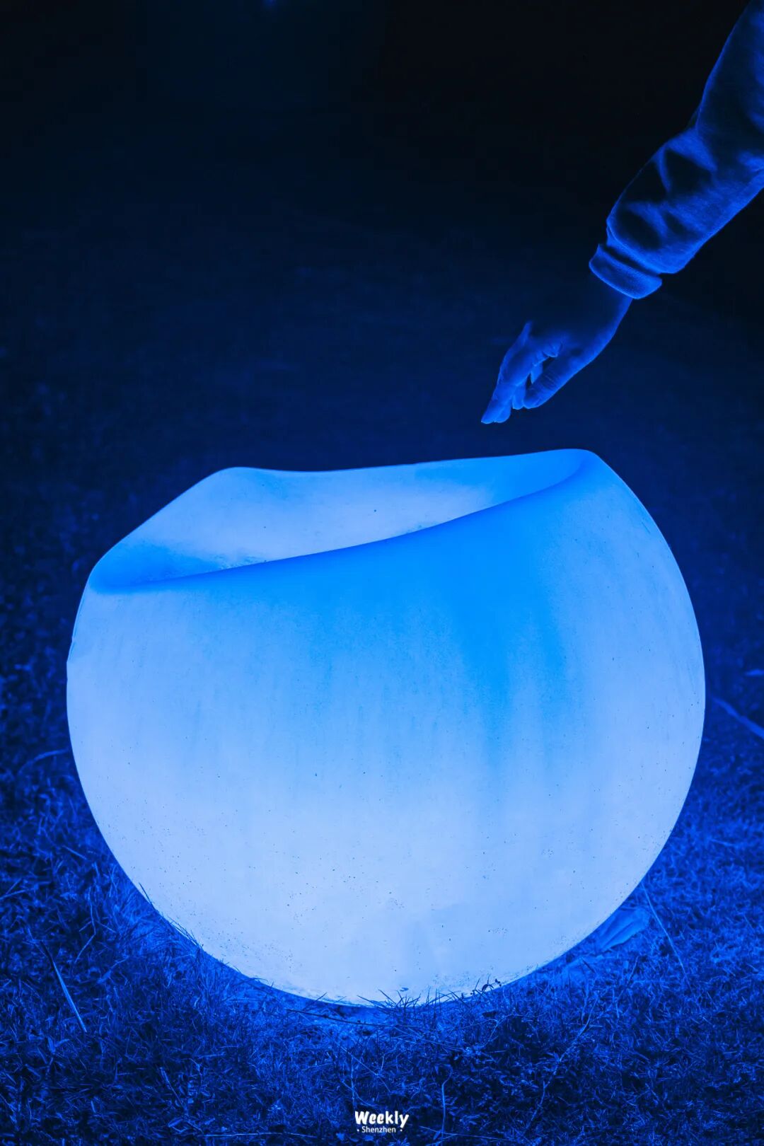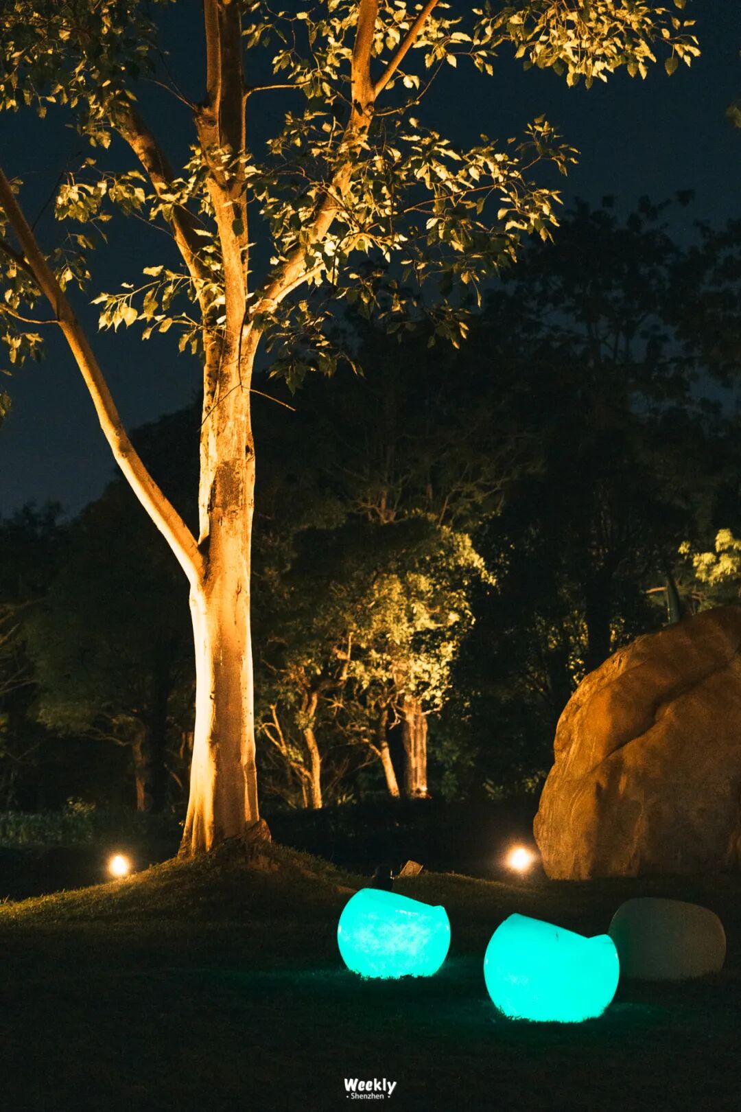 散落在各处的草坪座椅到夜晚也发挥了它最大的用处,化作地上的繁星,为我们照明和指路。