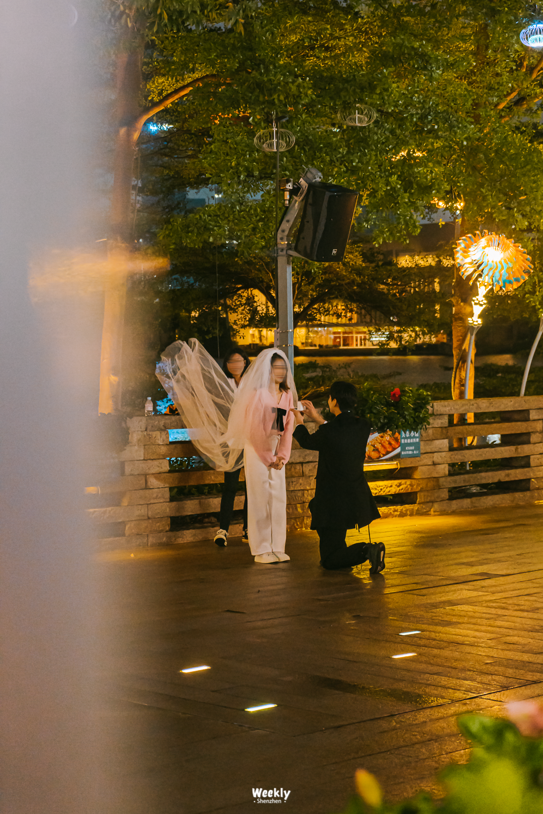 夜晚的灯光璀璨是城市仅剩下的风景,在灯下求婚,世界就只剩下风景与我和你。