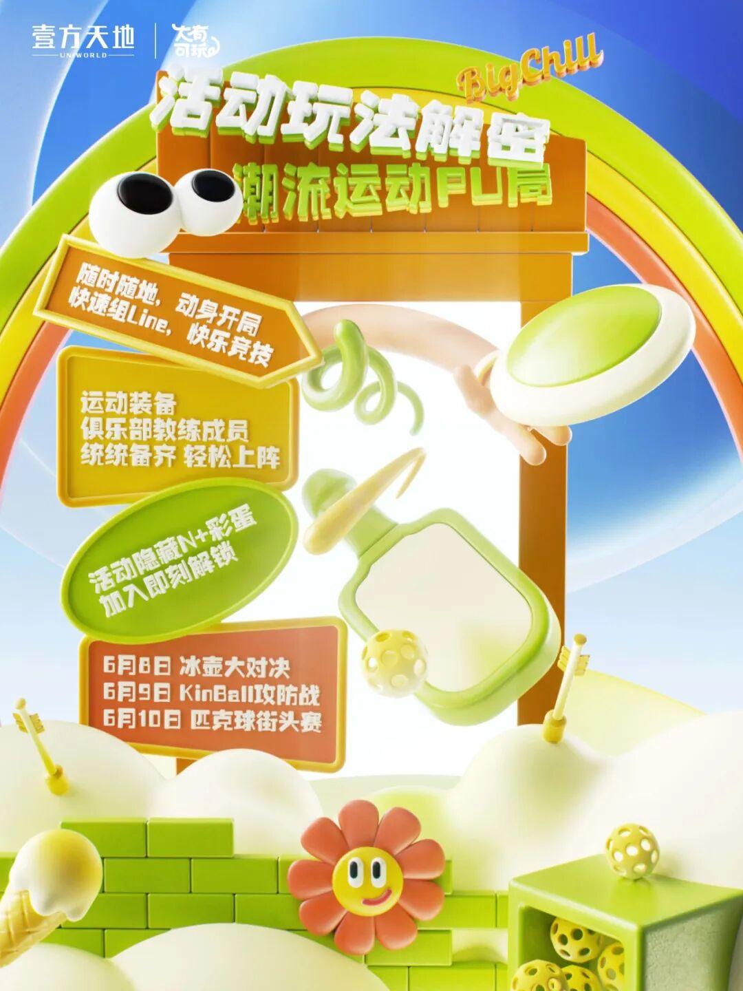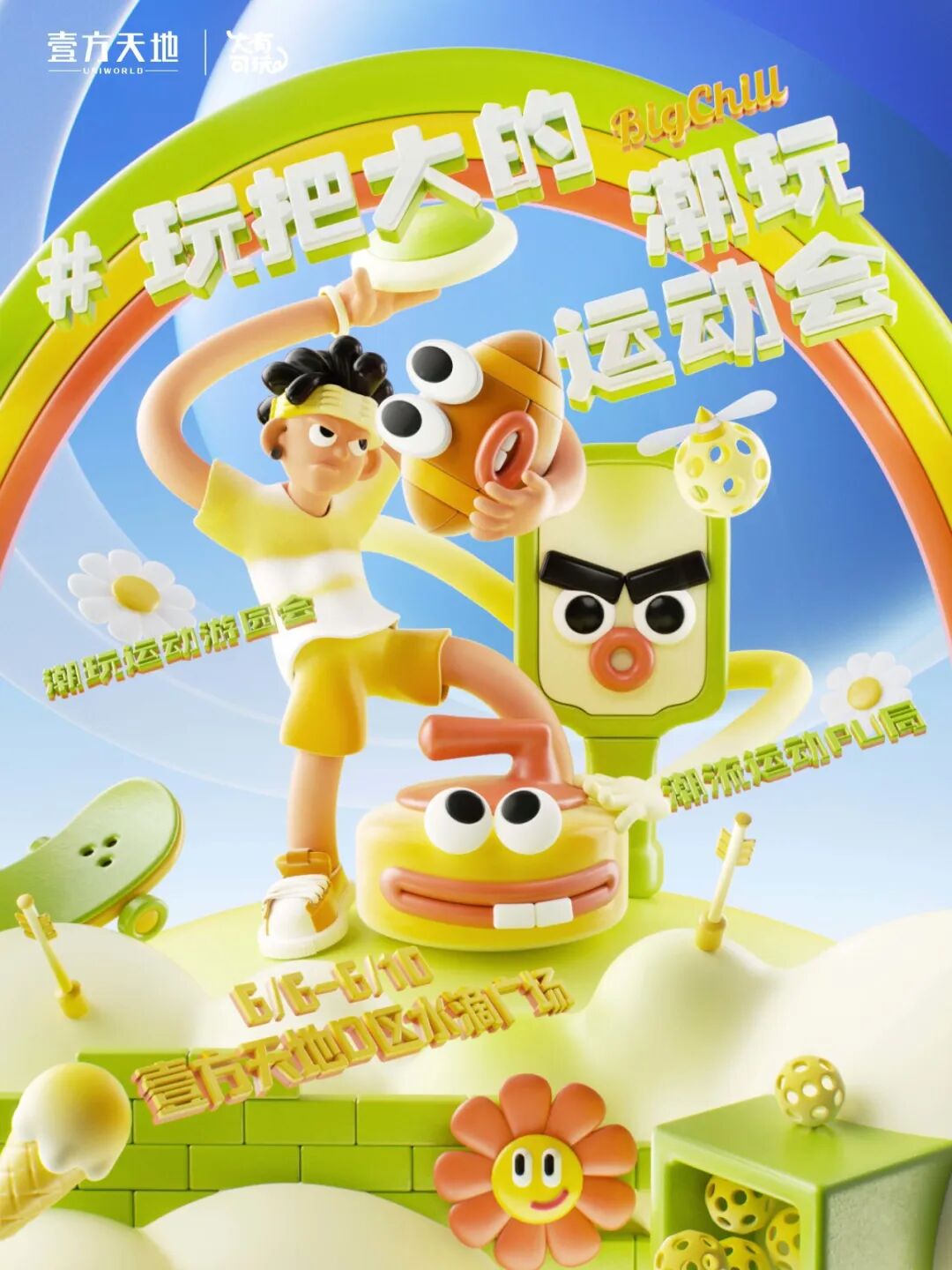 疲惫的身体,总需要一点有趣但温和的运动来激发新的能量。于是,壹方天地策划了一场#玩把大的#潮玩运动会。
