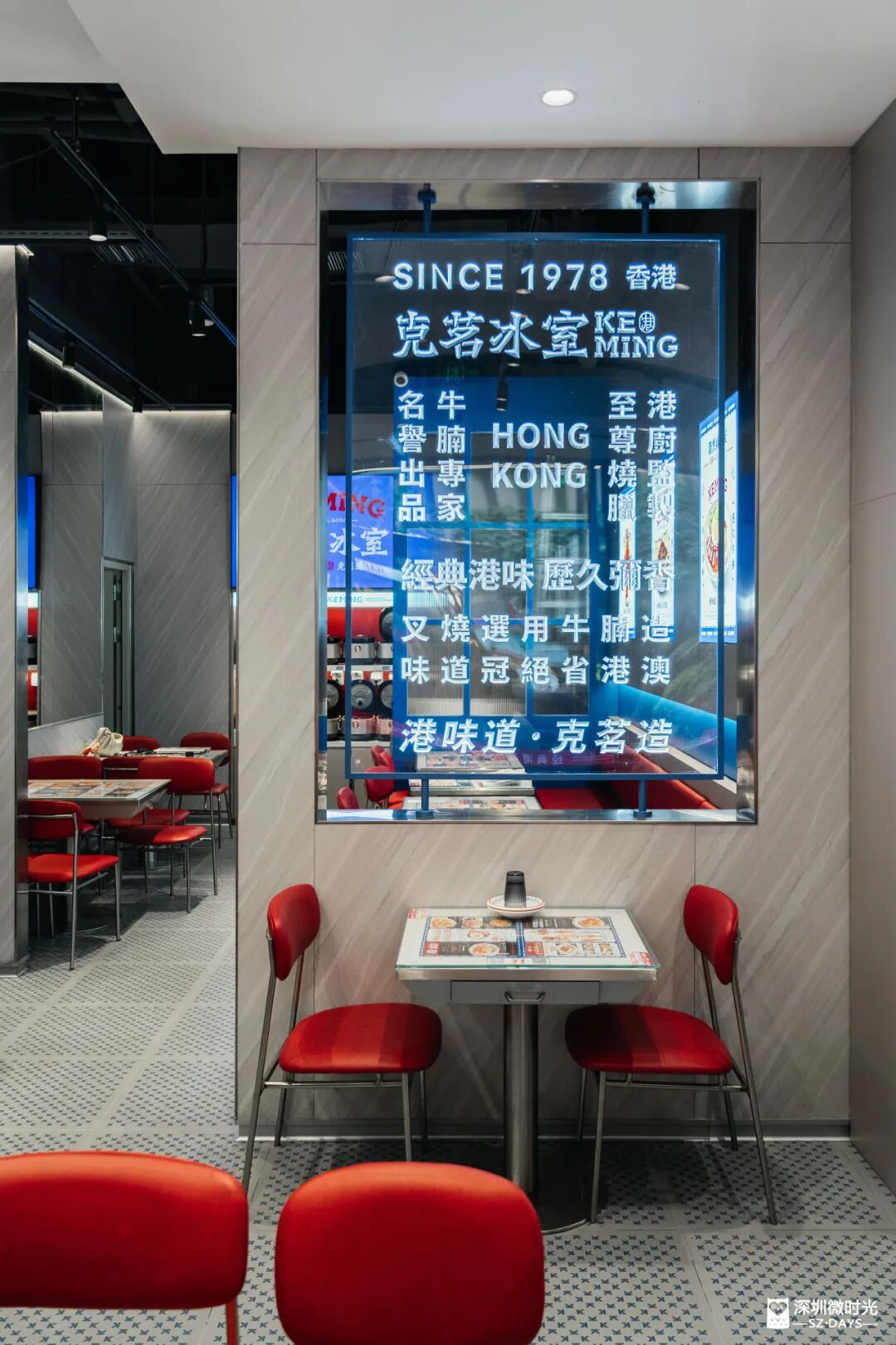 除了美食之外,克茗冰室的门店装修也具有浓浓的香港氛围,让人仿佛置身于香港街头小巷之中。标志性的红蓝搭配打造出经典港风场景,随手一拍都能出片。