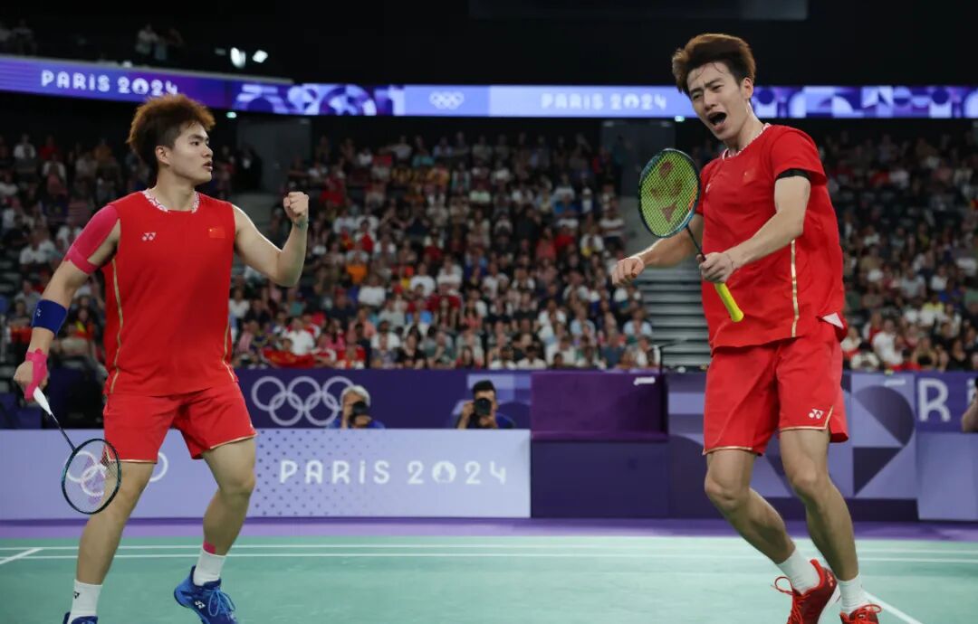 8月2日,中国组合梁伟铿(左)/王昶在比赛中。新华社记者 陈斌 摄