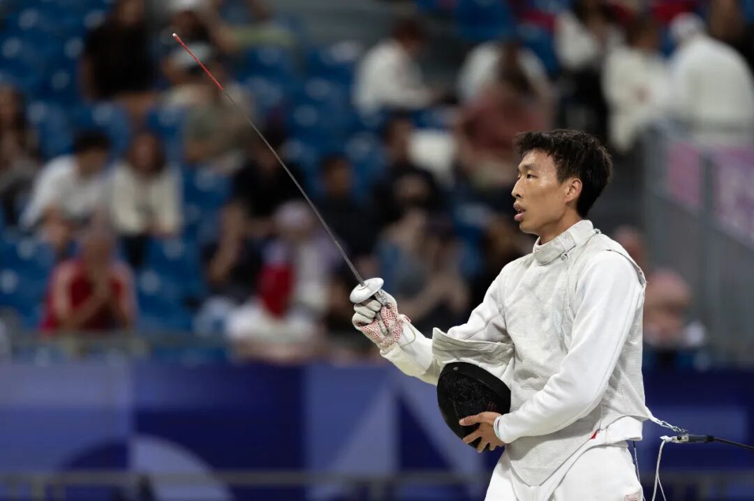 8月4日,中国选手莫梓维赛后向对手致意。新华社记者 费茂华 摄