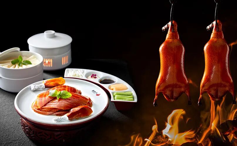 采用传统挂炉烤鸭工艺,掌握恰到好处的火候