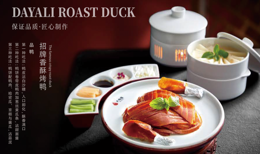 采用传统挂炉烤鸭工艺,掌握恰到好处的火候