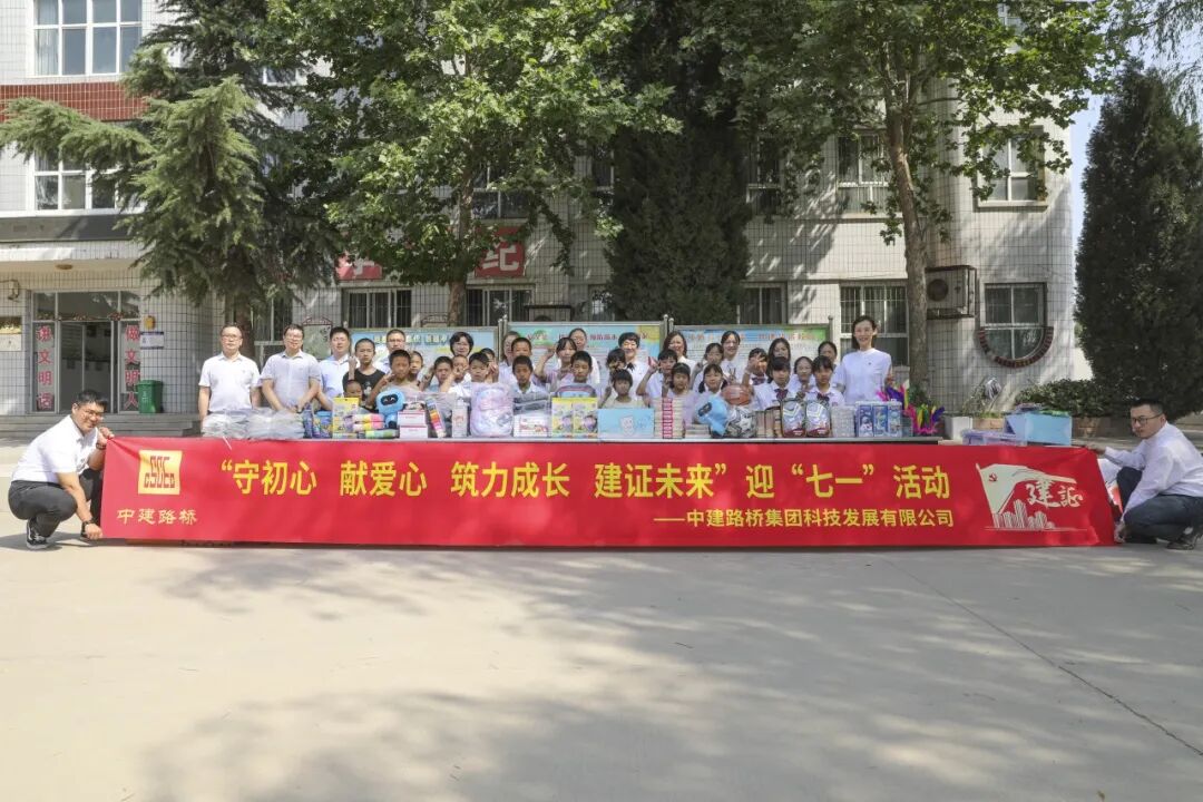 科技发展公司党委组织驻石党员干部到石家庄市赞皇县黄北坪小学开展“守初心 献爱心 筑力成长 建证未来”迎“七一”活动,与留守在乡的儿童共同学习领悟“赶考精神”,拼图中建路桥修建三条红色路,歌颂中国共产党,激励党员践行初心使命,勇担社会责任。