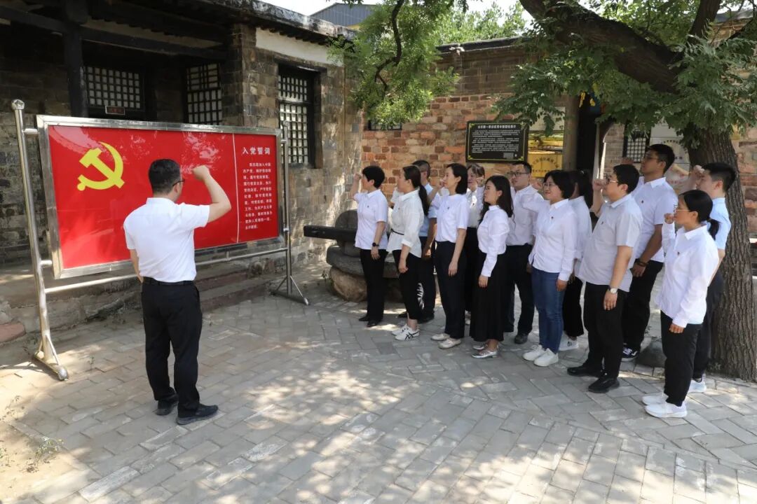 科技发展公司中心试验室党支部与机关党支部党员在太行军区第一军分区司令部旧址,举起右拳重温入党誓词,深深地感染着在场的每一名党员,激励着他们不忘初心,牢记使命,砥砺前行。