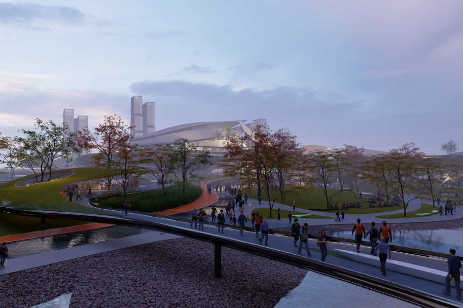 项目位于上海市奉贤新城,涵盖综合体育馆、健身中心、游泳馆、剧场、舞蹈室、阅览室等多功能空间及其他辅助设施,旨在打造一个集体育、文化活动、休闲于一体的综合性社区活动中心。项目建成后,将成为奉贤区的标志性项目,为奉贤区乃至上海市的居民提供高品质的公共文体活动空间,丰富社区生活,提升城市文化氛围。 为安吉“两山”未来科技城提供联通休憩、休闲娱乐功能性景观地带