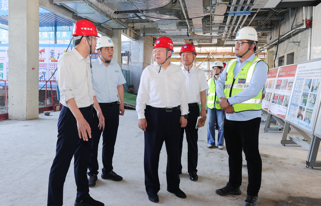 在项目现场,郑学选实地察看项目履约进展,认真检查项目安全生产、质量管控各项举措落实情况,详细听取项目资源配置、技术创新、基层党建等情况介绍,并仔细询问项目建设中的重点难点。