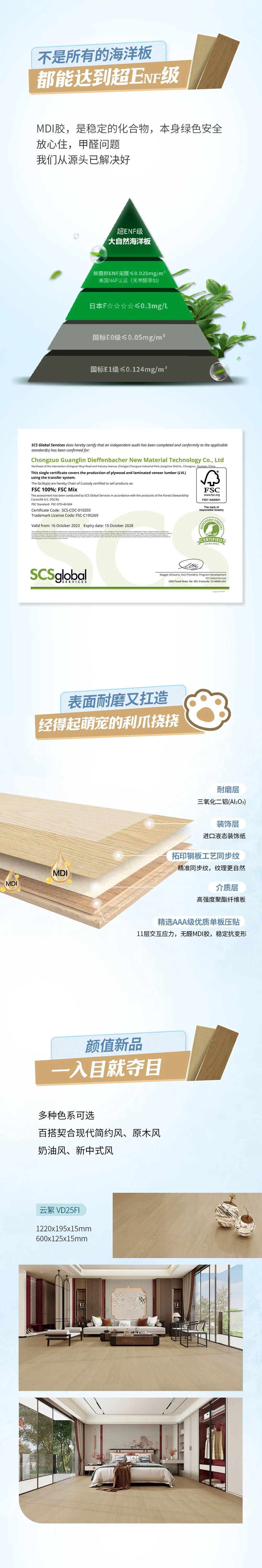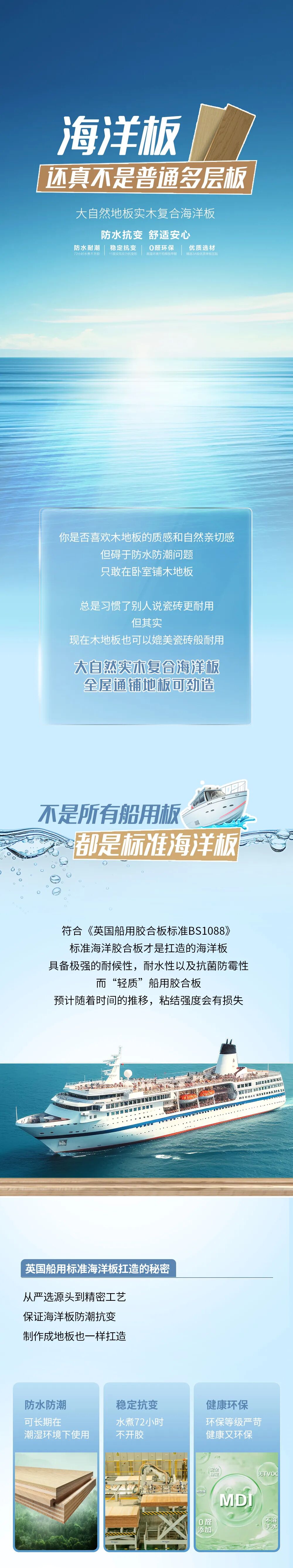 为了攻克“木地板怕水”这个难题,大自然研发团队历时3年潜心研发,重磅推出了“防水科技”,通过应用零醛智造“MDI耐水基材”、“防水型槽口”与“防渗漏锁扣”三重防水技术,由内而外地大幅提升强化地板的耐水稳定性。