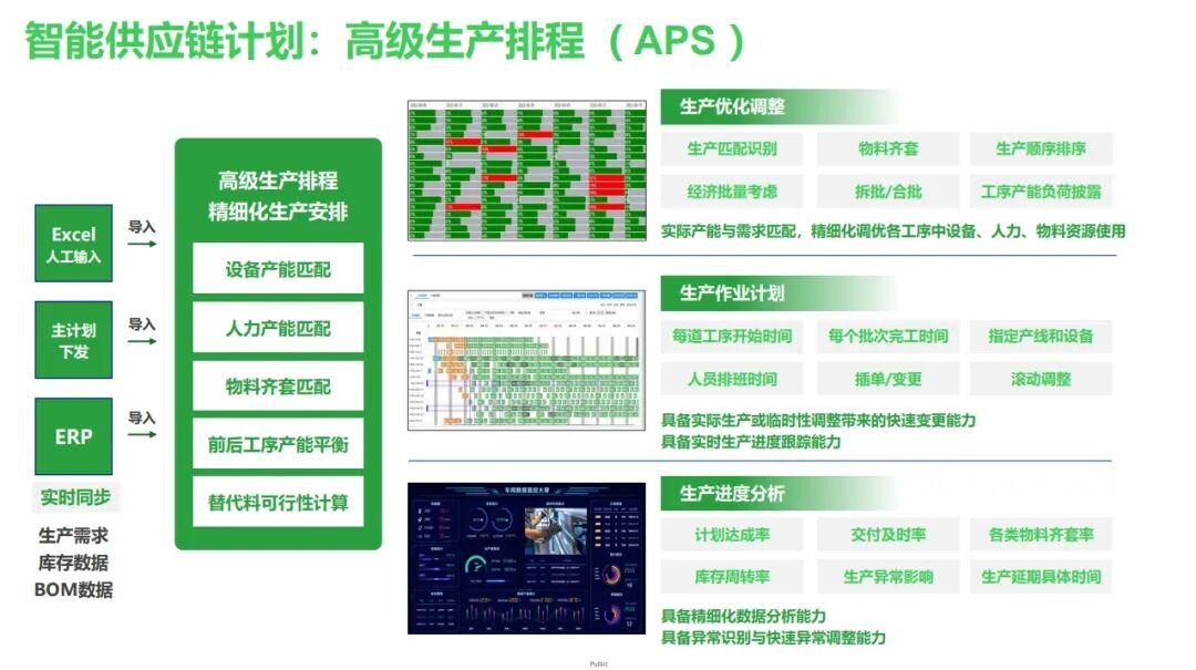 通过精细化生产安排,达成人、机、料的高效匹配和平衡,实现生产排程自动化、生产管控信息化和生产计划精益化,助力企业高效生产、精准决策: