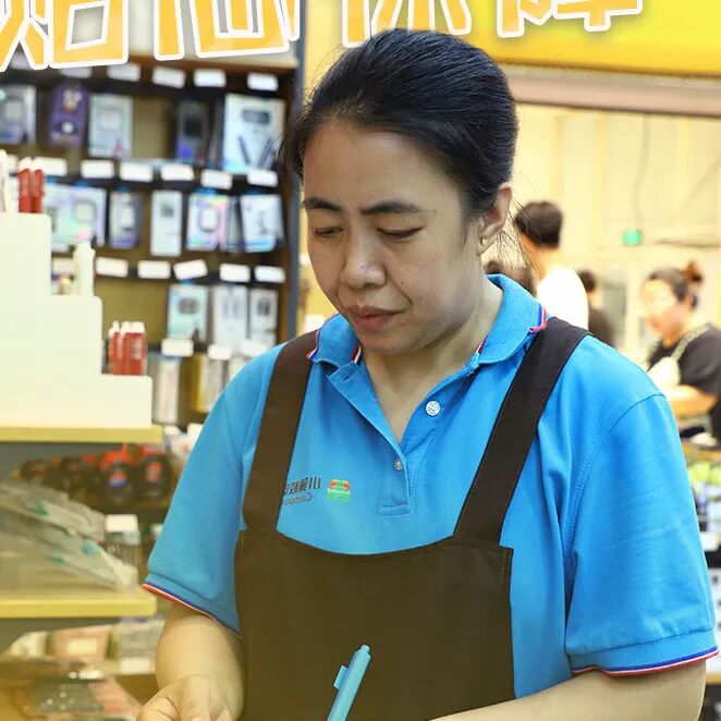 每天清晨,从日常用品到零食饮料,每一个分类区域都留下了她忙碌的身影。一丝不苟地检查每一件商品的保质期,确保学子买到的是安全放心的产品,根据销售情况及时补足货品、清点新到货商品数量、灵活调整货架的布局,让学生们能够一眼找到所需。对于平凡的后勤工作而言,热情比经验更重要,态度比能力更重要。