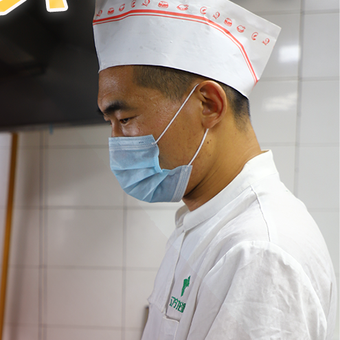 “厨房就是我的舞台,不怕苦不怕累,我对自己的要求就是脚踏实地,用心烧好每一份饭菜,全心全意服务师生。”