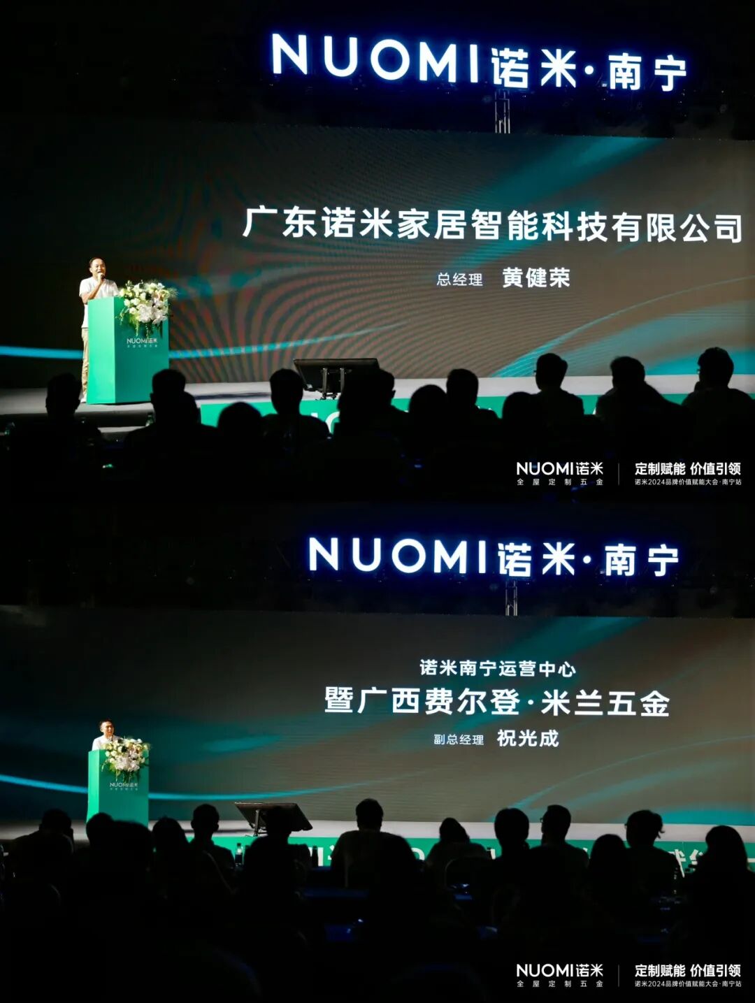 诺米总经理黄健荣与诺米各事业部负责人,诺米南宁经销商祝光成及全体成员,与赴邀的数百位定制客户、嘉宾朋友亲临大会现场,共赴这场定制赋能的思想盛会。