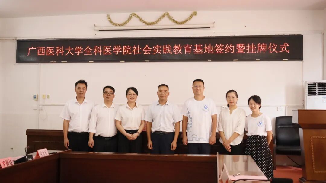 7月14日上午,全科医学院与来宾市象州县寺村镇中心卫生院举行“广西医科大学全科医学院社会实践基地”签约及挂牌仪式。双方就如何加强广大全科学子接触社会、了解国情、社情、乡情,服务民众的意识,如何引导广大青年学生健康成长,发挥全科医学人才优势,如何搭建促进乡村精神文明建设的重要平台进行深入讨论,并就强化学生创新创业意识、提供更加完善的创新创业平台等问题进行交流。