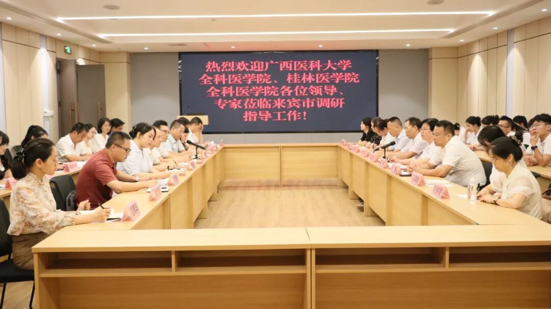 为促进基层医疗卫生事业的发展,进一步落实党和国家实施健康中国战略的重要举措,联合社会实践团队于2024年7月11日下午在来宾市人民医院进行调研,同与会的来宾市卫健委及有关科室领导,各乡镇卫生院负责人就全科医学生培养、人才需求等问题进行座谈交流。