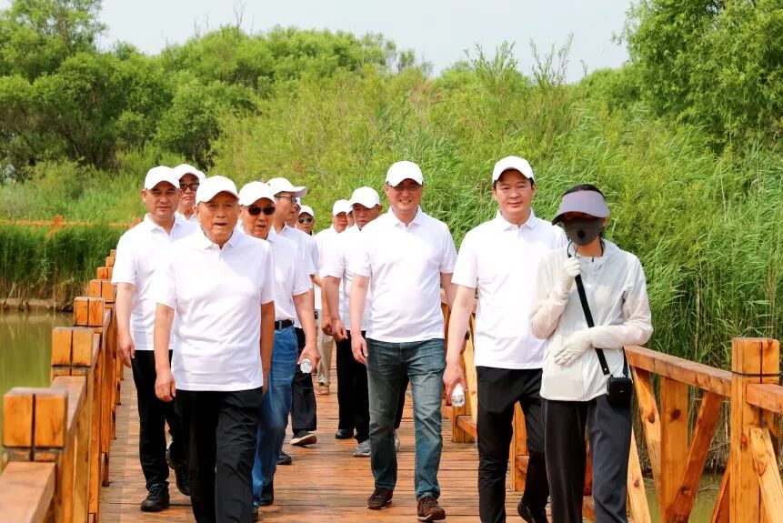 在黄河入海口,老领导一行参观了柳林木栈道、黄河入海出口纪念碑、安澜码头、黄河三角洲生态监测中心,并前往黄河口知青小镇(山东生产建设兵团一师一团三营、黄河农场三分场旧址),开展“忆苦思甜”党性教育。