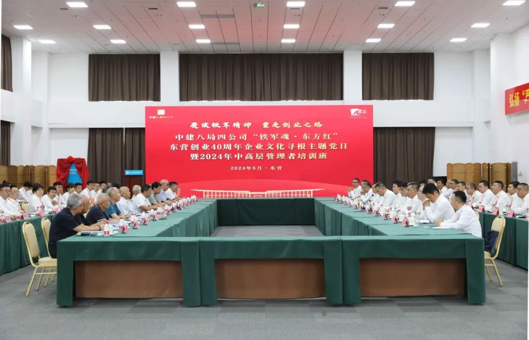 为庆祝中国共产党成立103周年、公司东营创业40周年,回顾公司创业历史、总结企业高质量发展的辉煌成就和宝贵经验,团结动员广大干部职工不忘初心启新程,牢记使命再出发,6月28日至30日,中建八局四公司“铁军魂·东方红”东营创业40周年企业文化寻根主题党日暨2024年中高层管理者培训班在东营举办。