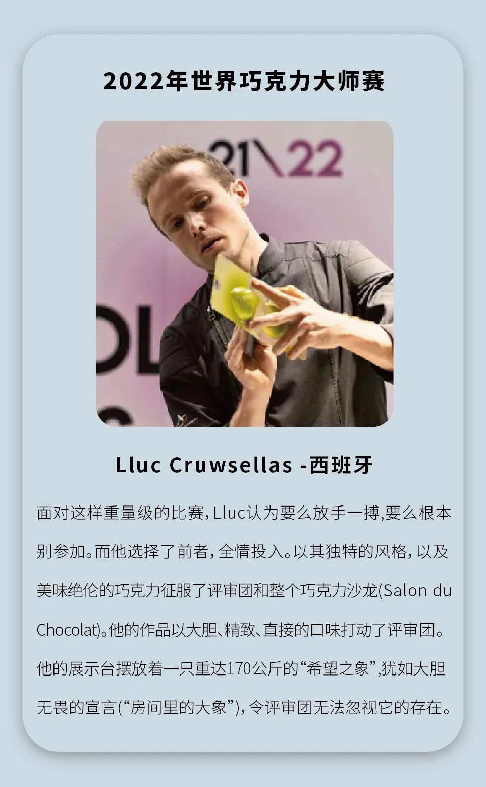 从中国区选拔赛最终脱颖而出的冠军不仅将收获“中国巧克力大师”的荣誉,更可有机会代表中国进军在比利时举行的“世界巧克力大师赛”总决赛,与来自世界各地顶尖的巧克力大师进行交流切磋,共同争夺“世界巧克力大师”的最高荣誉。