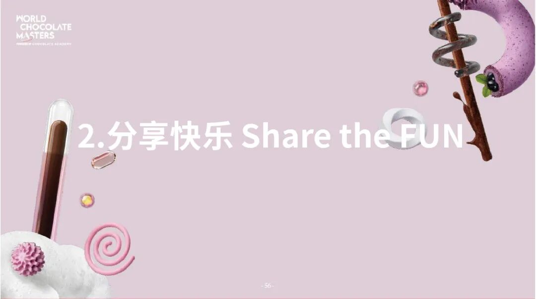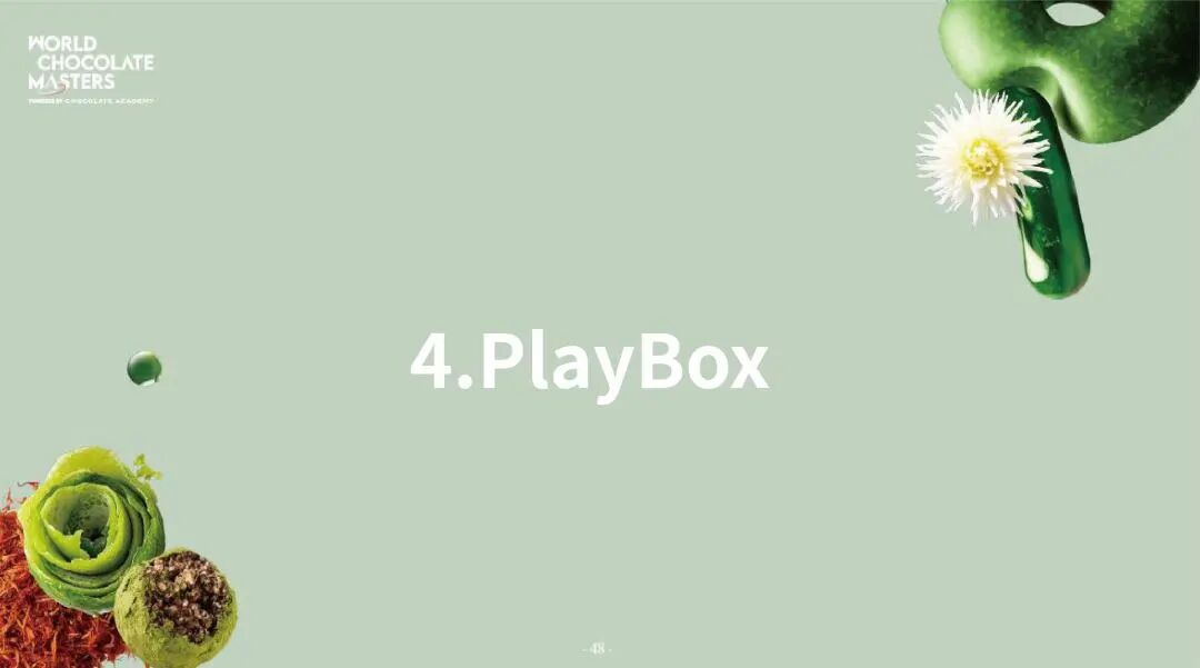 Play——充满天马行空的乐趣,Play能够帮助我们探索新鲜事物,挑战我们的认知边界。在本届世界巧克力大师赛上,我们邀您一起玩出新花样,革新演绎享乐方式,适应新的消费趋势,重燃对巧克力的热爱,创造并分享以巧克力为首选配料的全新风味体验。