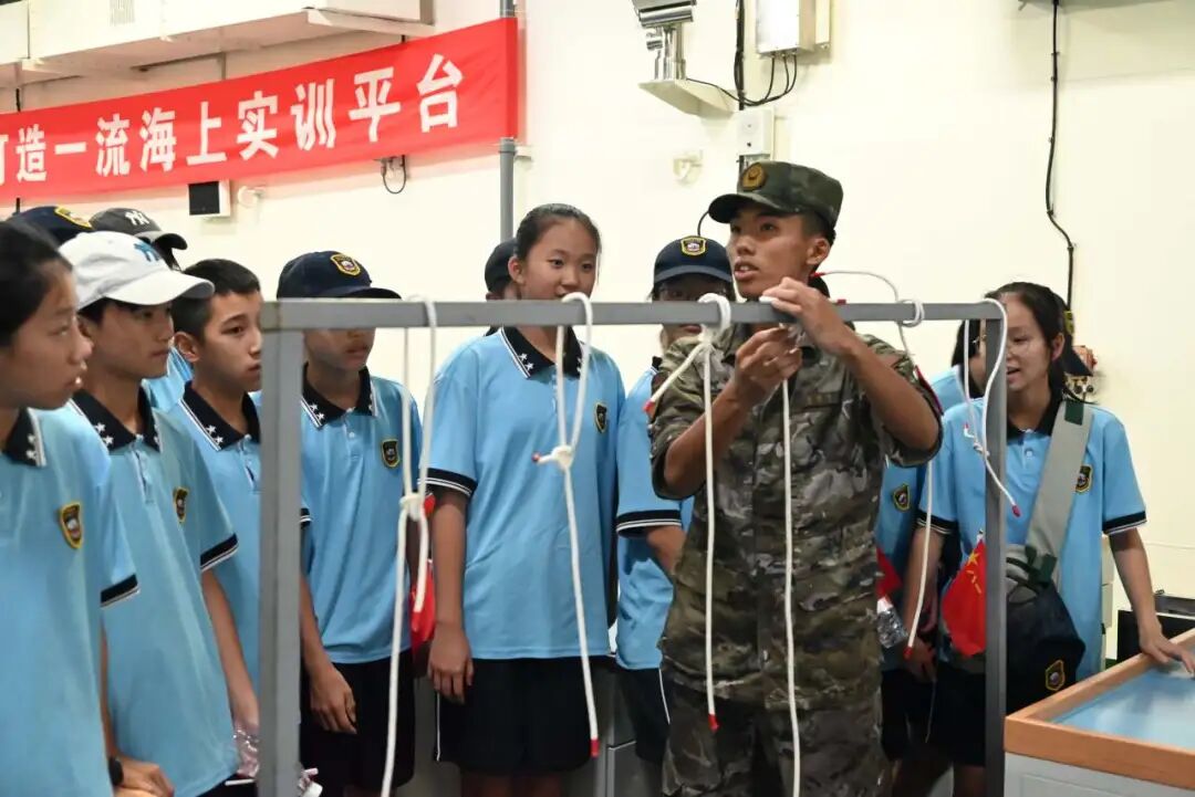 “开动一艘舰艇需要多少人?”“舰艇的‘大脑、眼耳和心脏’指的是啥?”“海浪声、机器声这么大,你们是怎么休息的啊?”“一个小小的锚在水中怎么能固定住这么大一艘船呢?”……面对浙江省八一学校“军娃”们颇具专业水准的提问“暴击”,各岗位的讲解员不敢有一丝马虎,聚精会神开展了详细讲解和操作演示。