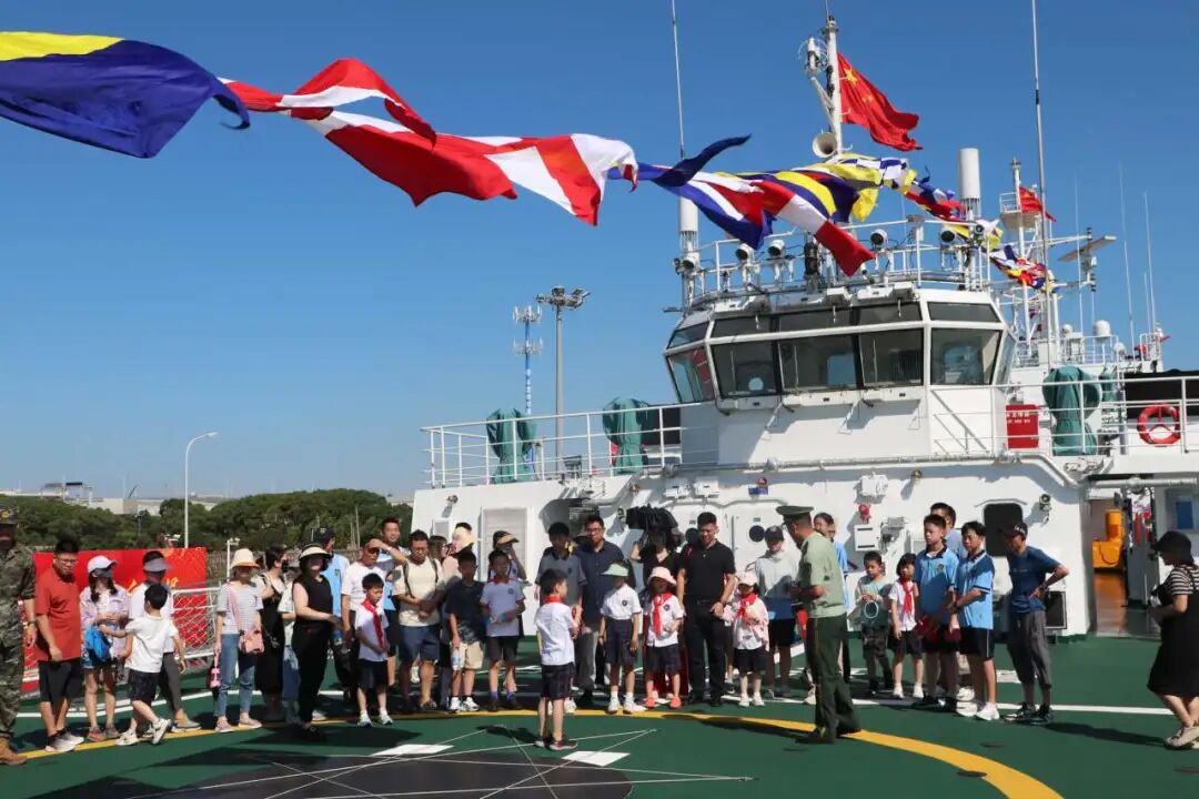 码头的舰艇威武雄壮,高悬的满旗猎猎迎风。在八一建军节来临之际,海警学院某大队开展“乘风破浪向强军”主题军营开放日活动,邀请驻地党政机关工作人员、浙江省八一学校师生代表和学院教职员工家属,进校园、登舰艇,共同庆祝第97个八一建军节。
