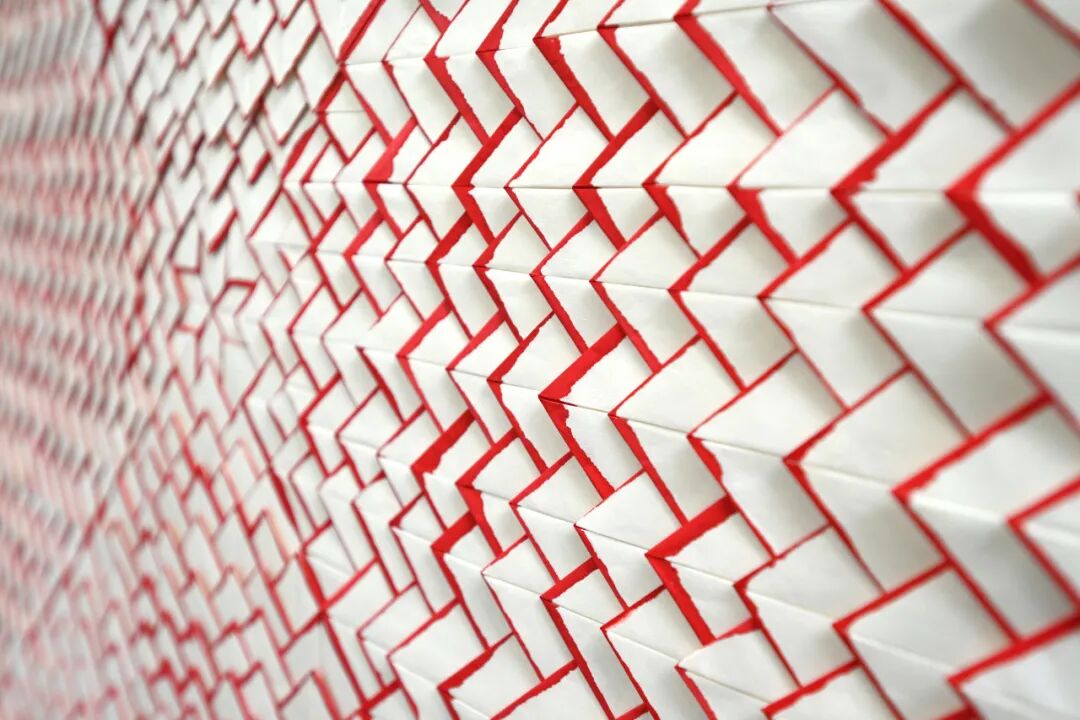 中国自古以来有“敬惜字纸”的传统美德,即对写有文字的纸张表示尊敬和爱惜,传递出古人敬重文化的思想。在今天,“敬惜字纸”的思想内涵不止于对传统的继承,更在于我们从传统出发的再创造。作品沿用外婆拼布的工艺手法,以书写用过的宣纸、竹纸为材料,通过折叠、染色和重构,形成了如花样绽放的新形态。在材料置换、工艺衍生的创造中,文化以一种温暖的情怀沁润着我们的心田。无论是手艺还是文化,都融入了当下的创造之中,这种对传统的态度是我们的传家宝。”