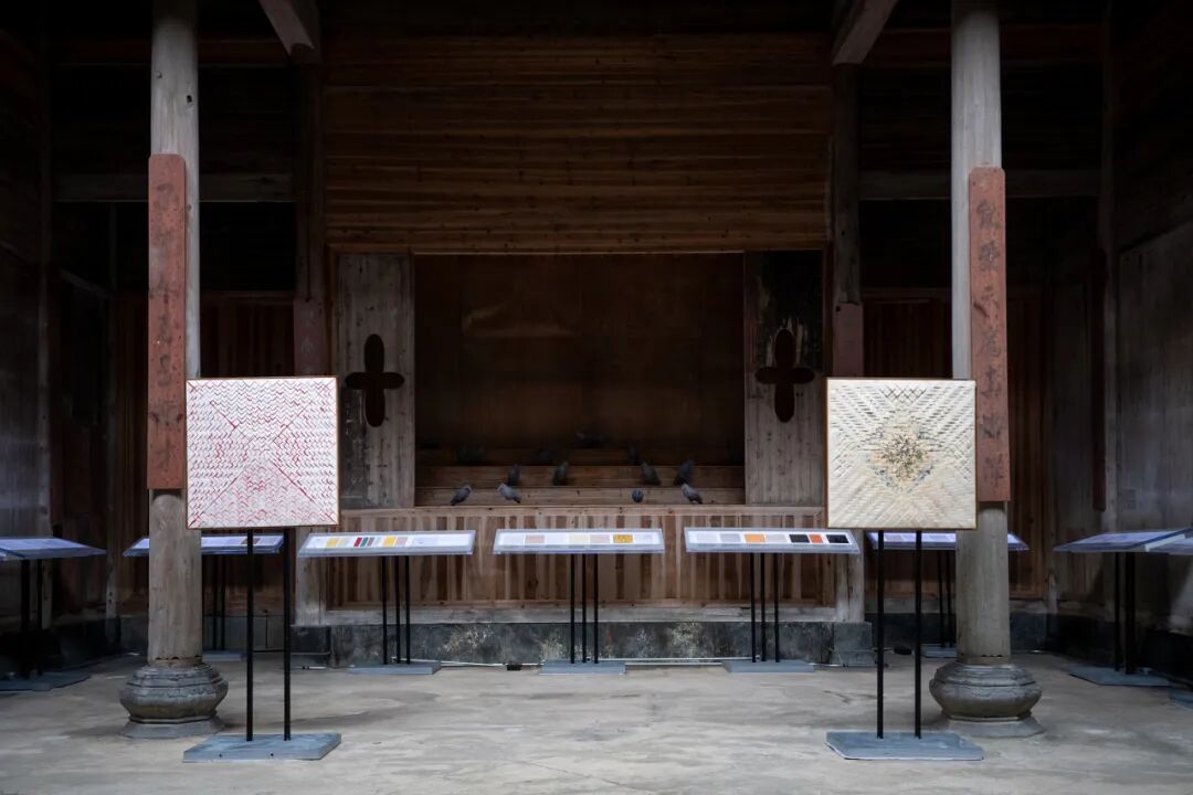 细看之下,在霜雪之上又夹杂着各种不同的印记与气息,有的来自乌溪带着青檀的芬芳,有的源于高黎贡杂糅着构树皮的细腻坚韧,千差万别的肌理、微妙的色彩变化都彰显着它们来自不同产地的独特工艺基因。辗转腾挪间,原博将一张纸的原始材料到各个产地不同纸张及版画印刷效果一一铺陈开来,织起一张全国民间造纸工艺的网络,连接起过去和今天,传承千年的古老工艺又在静谧中散发出勃勃生机。