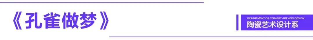 孔雀身上总满饰着奇幻的纹路,尾羽上金色的眼睛能够联通起某种听觉,如同梦境那般玲玲作响。作品利用几何线条抽象出孔雀的造型,将丰富心声通过彩色化妆土传达出来。而作为一件日用陈设花器,我相信它也会将这份美和浪漫继续传播到我们的生活当中。