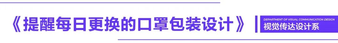 在设计上,第一,为了满足提醒每日更换口罩的功能需求,将口罩与日历进行结合,在应用场景上,可将口罩悬挂在门口,提醒用户出门时更换口罩,每个口罩的独立包装上印刷了日期和相关信息,用户在进行像揭下日历一样取下今日口罩这一过程,包装与用户之间形成了互动。第二,利用口罩内包装形状和堆叠产生的体积,减小外包装纸张的运用,只在包装上部分采用纸套设计,相对于传统纸盒包装节省了三分之二的纸张用料。收纳上采取悬挂式方法,在包装上端留有悬挂口便于销售和使用,使得外壳包装尽其所用。