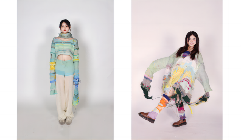 时光店铺有着我对外婆的记忆:温暖、坚韧、抗争、个性。她让我感悟到人生需要打破束缚,敢于追求,老年人的生活也有不一样的光芒。在这个虚拟的店铺中,缤纷的色彩与温暖的针织材料结合,为“外婆、我、60年后的我”提供有趣可穿的服装。