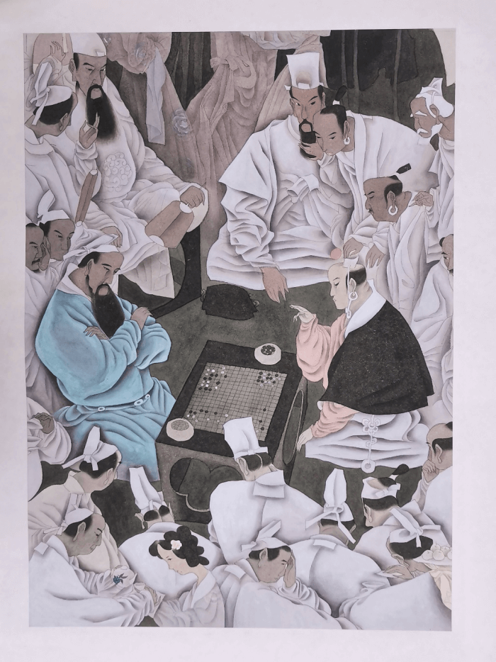 临摹了吴绪经老师的《竞技图》中的一部分,因为画面中人物的神态和外形都很精彩,临摹的时候也深有体会,人物的服装也是没有尝试过的画法,先分染再大面积用白提亮,把分染的部分留出来,因为白色不太容易涂匀,所以比想象中要繁琐,但因此也学到了很多。